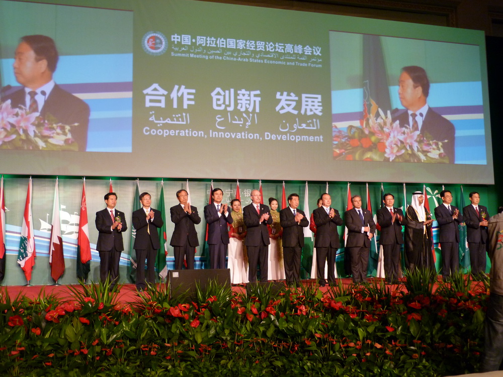 首届中阿经贸论坛在银川开幕,吸引了60多个国家、地区和国际机构的6000多名嘉宾齐聚塞 上共商发展。出席宁洽会暨首届中阿经贸论坛开幕式的中共中央政治局委员、国务院副总理回良玉,全国政协副主席白 立忱,斐济群岛共和国总统埃佩利·奈拉蒂考,约旦哈希姆王国前首相宰哈比,国家民委主任杨晶,在主办方领导商务部部长陈德铭,中国国际贸易促进委员会会长 万季飞,自治区党委书记、人大常委会主任张毅,自治区主席王正伟,自治区政协主席项宗西等的同下巡馆。